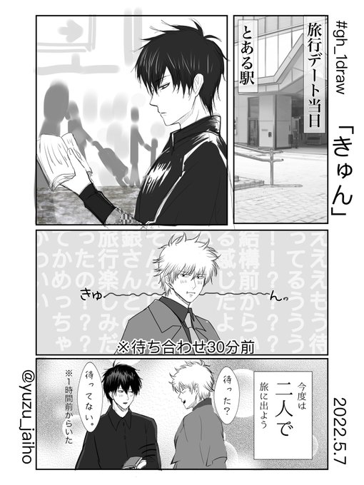33 162 #gh_1draw 銀土ワンドロ お題 キュン 楽しみで楽しみで早く来ちゃった 22/05/08 00:59