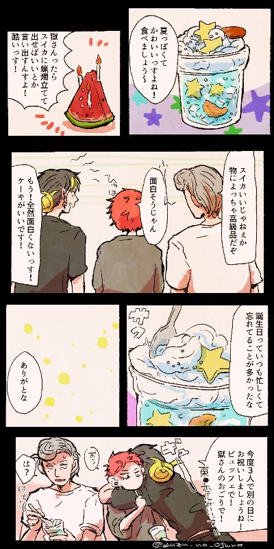 波羅夷おめでとう~家族と仲良くすごしてくれ~! (漫画の順番が前後してたので再投稿しました?なぜ?すみません?いいねもリツイートもありがとうございました😢) #波羅夷空却誕生祭2020 #波羅夷空却生誕祭2020