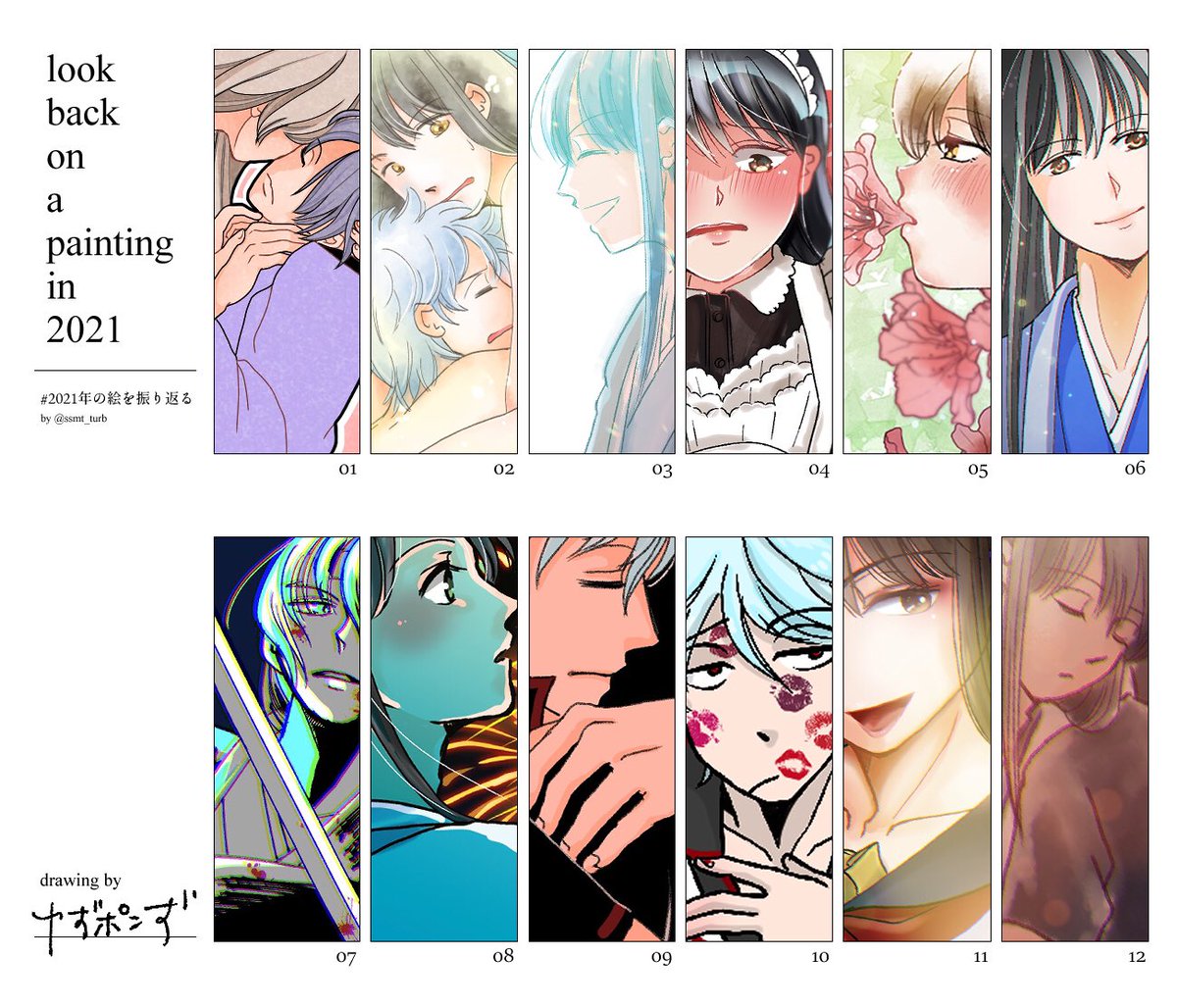 今年そんなに描いてないしな〜と思ったけど何とか月1枚ペースぐらいでは描いてたみたい。1月にFinalだったんだよね!びっくりだわ! #2021年の絵を振り返る