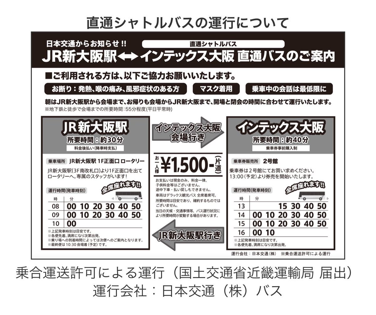 266 92 やったー!インテ、新大阪から直通シャトルバスが出るよ!多分コレが一番楽なのでタイミングが合う方はおすすめしときます〜! 22/12/31 14:51