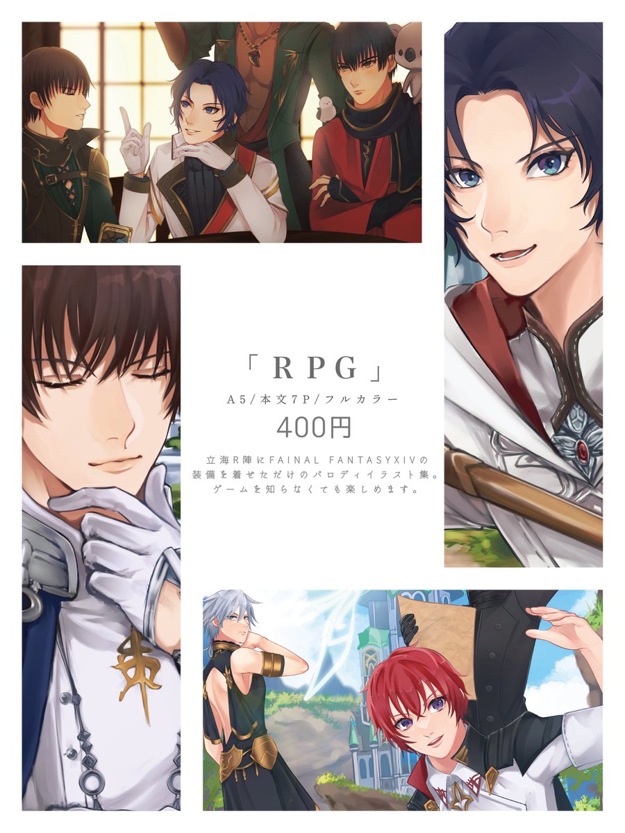 4 13 12/18 COMIC CITY SPARK 17 第20回 全国大会GS 新刊サンプルです‼️ 【 R P G 】 A5/本文7P/フルカラー/400円 FF14の装備着た立海R陣のパロディイラスト集になります💎🎮 ゲーム要素ほぼ無いのでFF知らなくても大丈夫なハズ 22/12/14 22:10