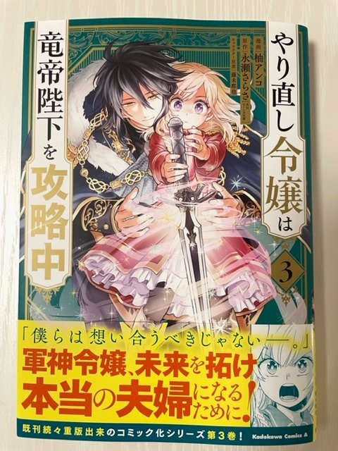 今月3/26日発売のコミカライズ版「やり直し令嬢は竜帝陛下を攻略中」書影が公開となりました✨ store.kadokawa.co.jp/shop/g/g322105… こちらの3巻で原作1巻分のラストまで収録&雑誌未掲載のおまけ漫画も2つ収録されております😊 お見かけの際は何卒よろしくお願いいたします🙇♀️