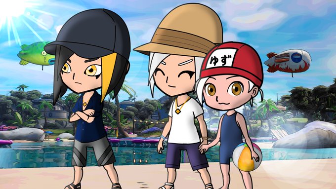 ビーチに遊びに来たハク、クロ、ユズ ハクとクロは「同じ服着せて色変えたらええやん」 って最初は思ったけど、だんだんそうはいかなくなった #フォートナイト #Fortnite #フォトナ #FortniteArt #fortnitefanart #フォートナイトイラスト