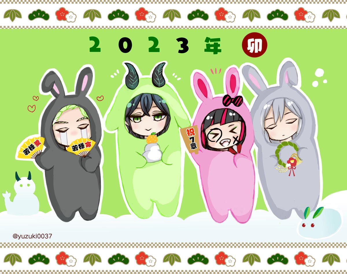 🎍Happy New Year🎍今年も宜しくお願いします🙏✨遂に7章も開始してディアソの話も深まっていくので楽しみです^^卯年なのでディアソメンバーでうさうさしてもらいました🐰🥕 #ツイステファンアート
