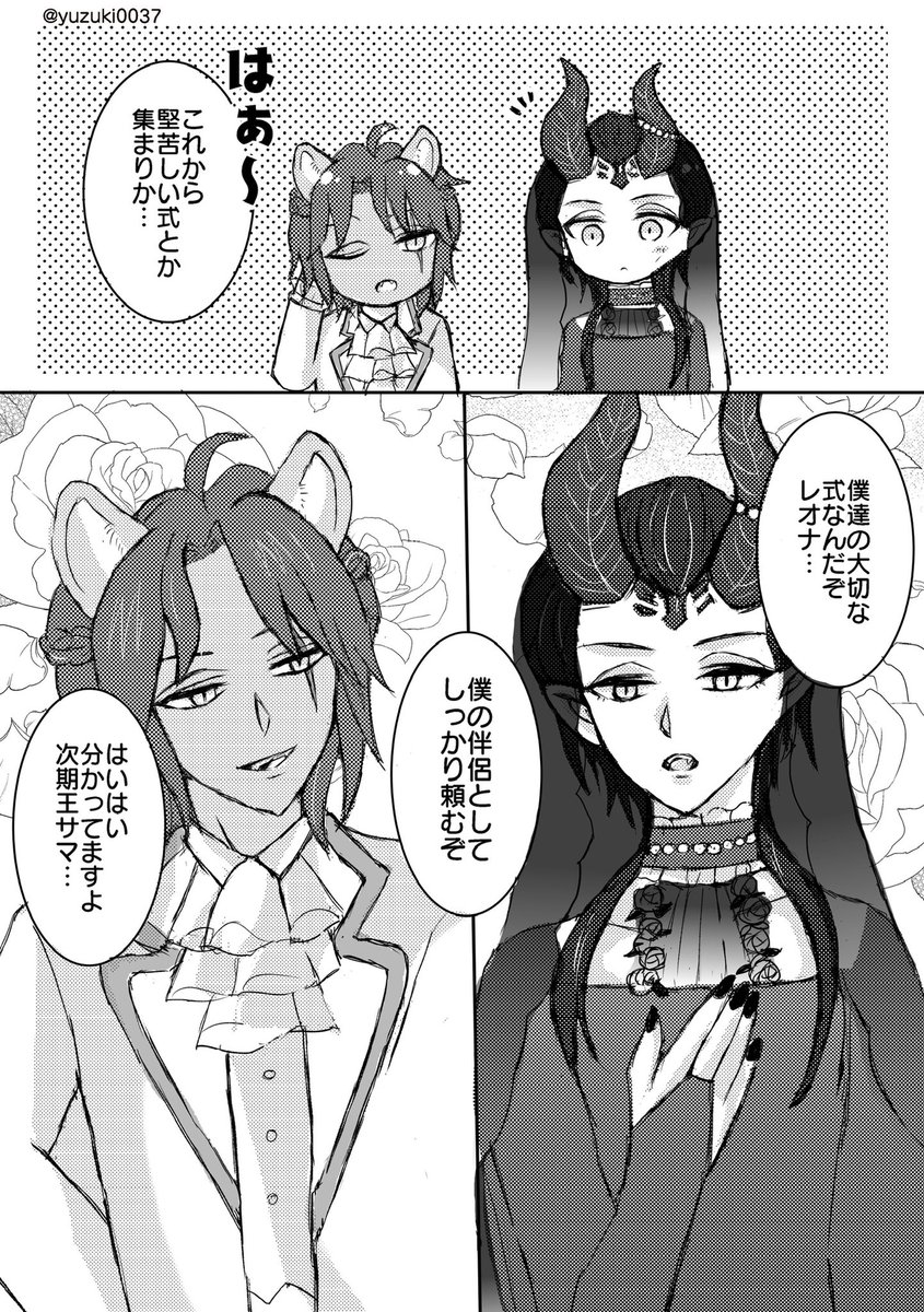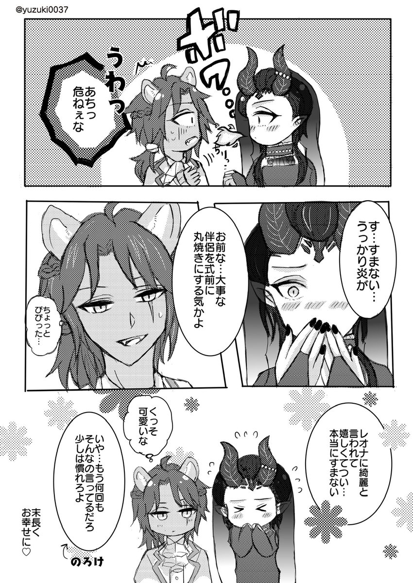 【サンプル告知】素敵な🦁🐲アンソロに参加させて戴きました✨茨の谷で結婚して、仲睦まじく過ごしている2人の姿を描きました。少しでも萌えて戴けたら幸いです。2p目から肌色が強くなるので、ツリーにポイピク送付させて戴きます↓ #レオマレアンソロ_ベネディクティオ