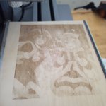 0 7 #絵かゆ #できたてころね レーザー彫刻してみた 色が薄いなぁ (絵がかけないのでネットに載ってるものを使用しました。) 21/03/31 13:07