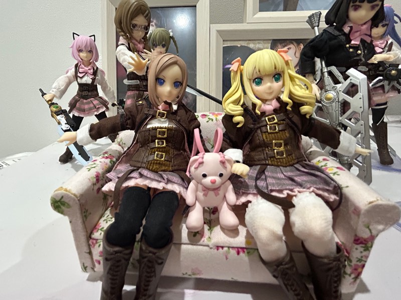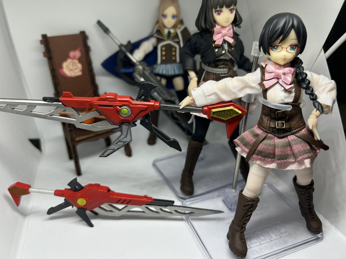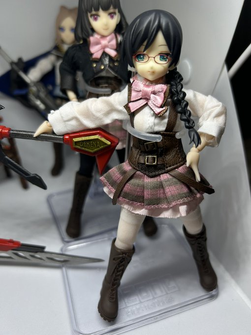 工廠科の御庭番さんのシュガール(ラスバレ聖恋カラー)完成…したけど、塗装は難しいし、塗膜が厚くてクリアランスギチギチだから変形できないし正直失敗した…まあ飾る分には大丈夫…かなぁ #アサルトリリィドール部