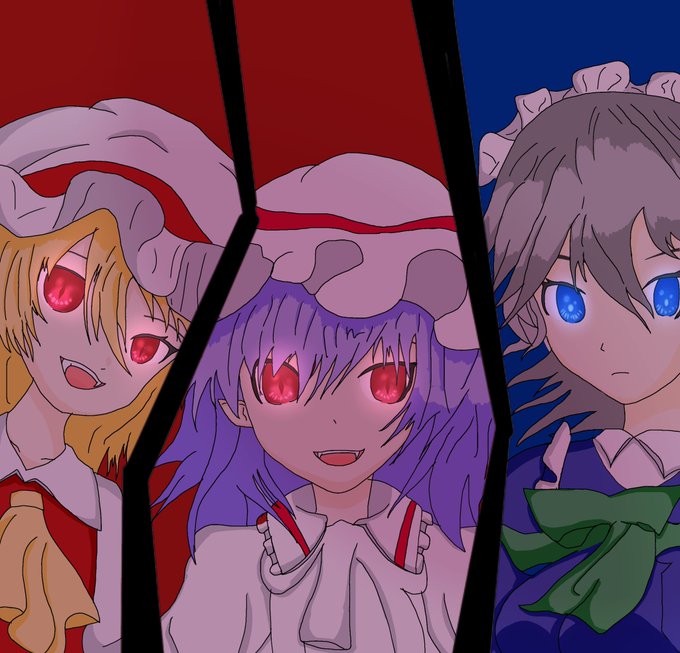 #イラスト #イラスト好きな人と繋がりたい #東方Project #レミリア #フラン #咲夜 再喝