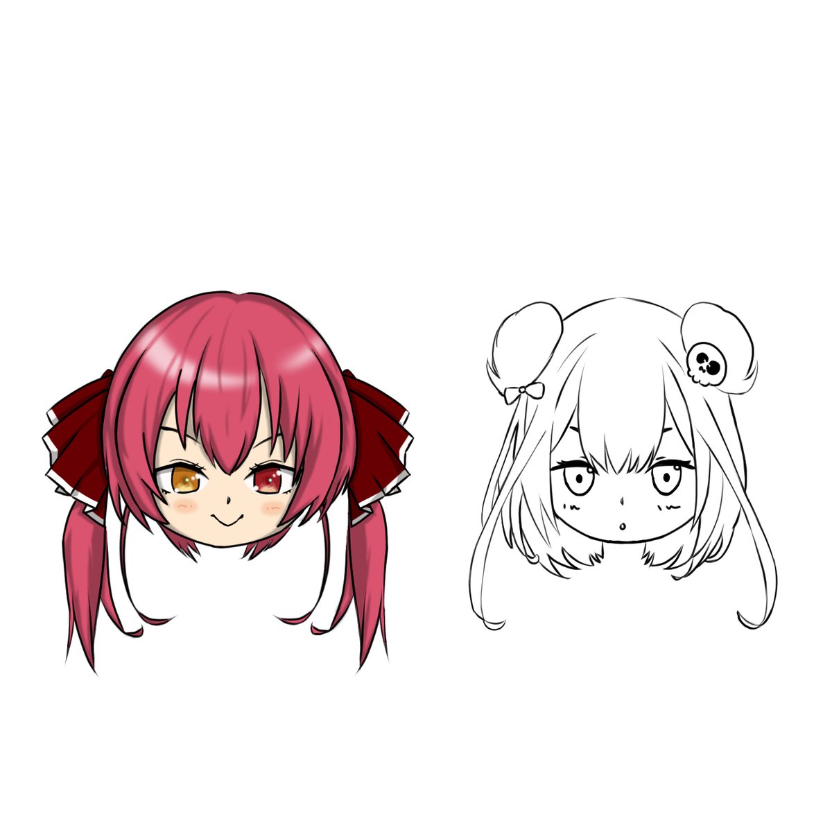 マイクラの会話より、スバル&あくあ。初描き!下書きまで。仮色塗って清書して形整えて色塗ります。 #プロテインザスバル #あくあーと