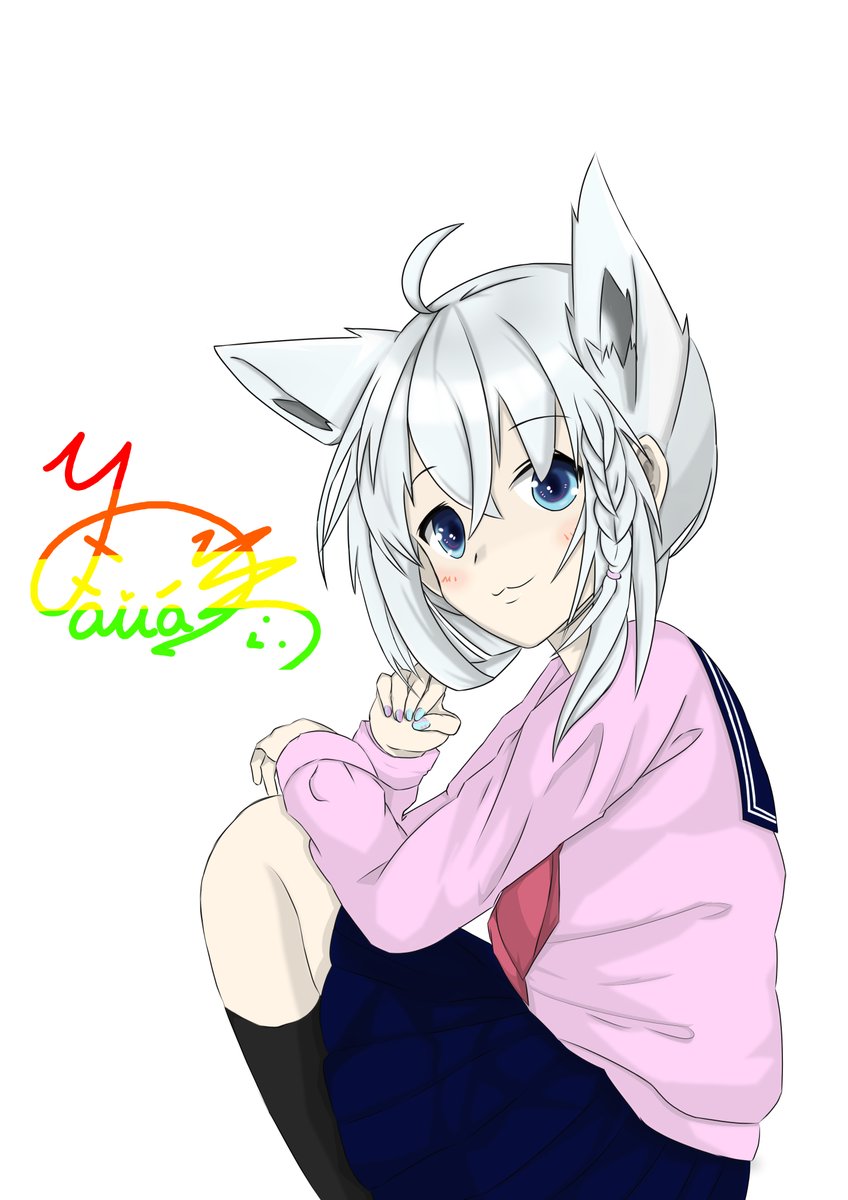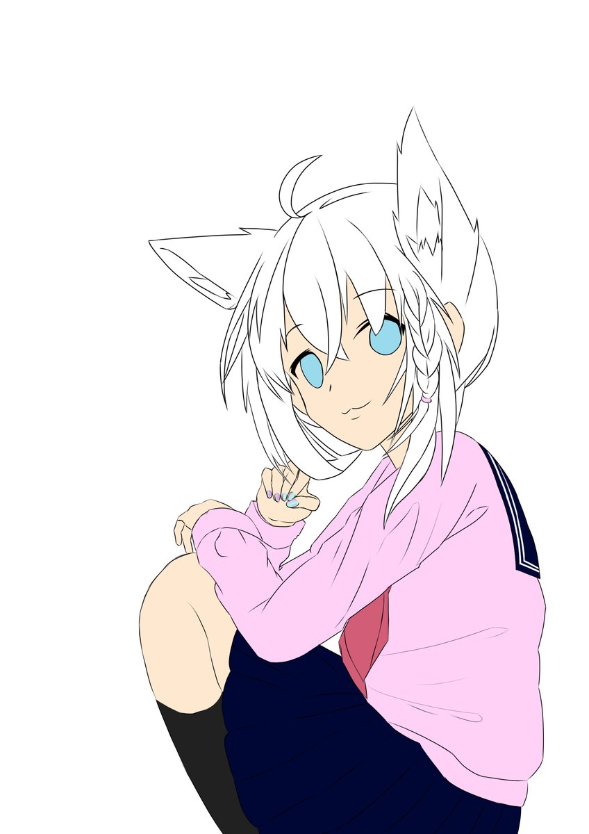 塗り2日目。一応完成。制服シリーズ、猫又おかゆ #絵かゆ #制服 #ホロライブ