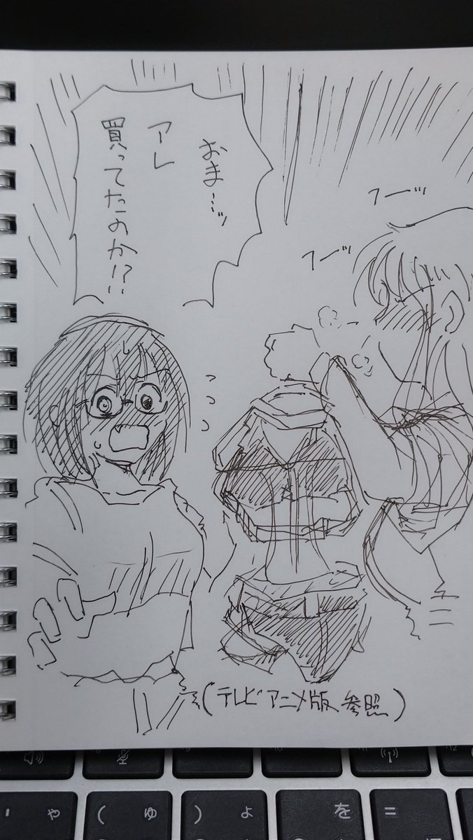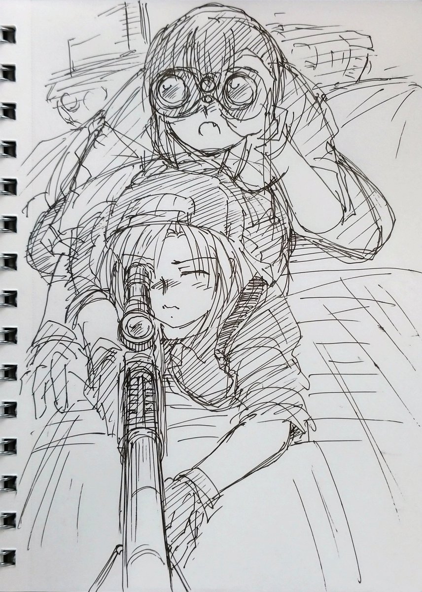 二週間ほど前のこのらくがき。 描いてるときから思ってたんですが、これ、気を抜くとこう描きそうになってた。 MSV(ガンプラ)の、プロトタイプドムの箱絵。 観測してるザクの、謎のサムズアップが好き。 (元の絵は検索してみてください) twitter.com/yuzukineko/sta…