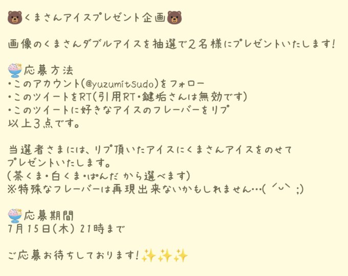 90 128 🐻くまさんアイスプレゼント企画🍨 詳細は画像をご覧ください! 21/07/12 12:30