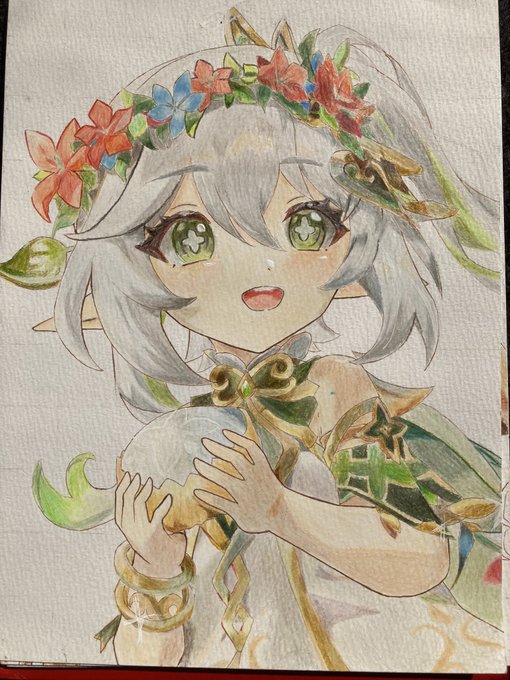 ナヒーダ復刻決定記念!! #原神 #genshin #genshinimpactfanart #ナヒーダ #nahida #模写 #色鉛筆画 #色鉛筆