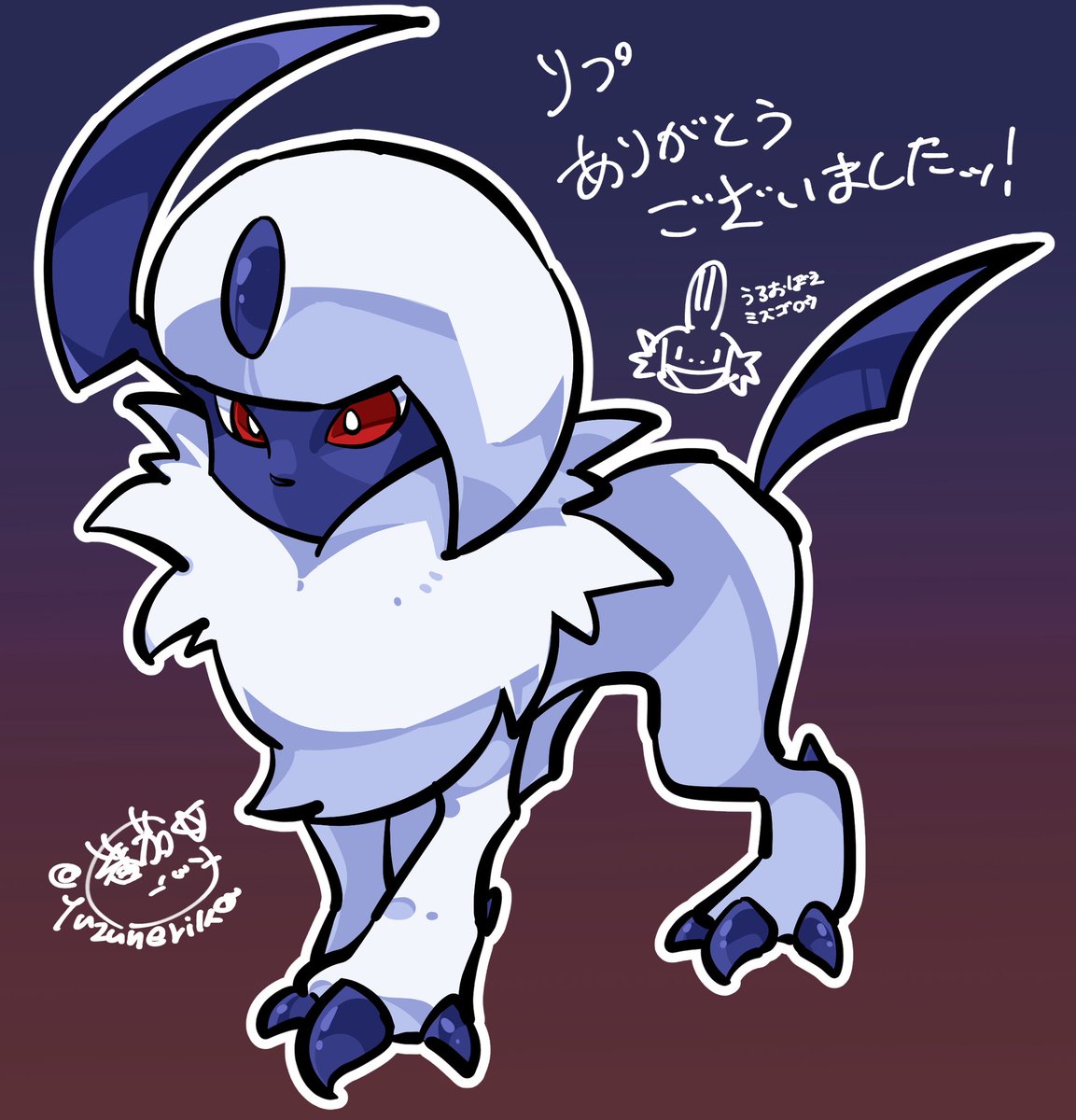 昨日に続いて今日はアブソル描きました めっっっっっっっっちゃ難しかったのでこれで勘弁してくれ…こういう足どこにどう曲がるとかまだ全然わからん まあそれを練習するためにポケモン描いてるのでよろしくです…リプライありがとうございました! twitter.com/yuzunerika/sta…