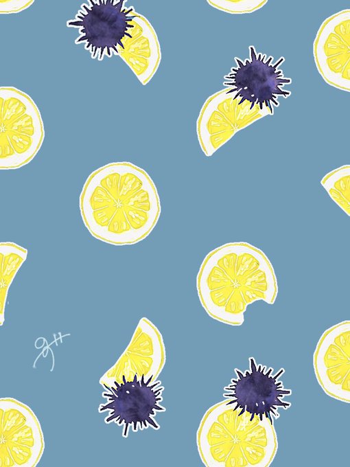 れもんウニ すっぱくなるらしい #絵描きさんと繋がりたい #illustration #創作クラスタさんと繋がりたい #Amaziograph #1日1絵 #創作 #パターン #テキスタイル #ウニ #ゆるいイラスト #アイビスペイント