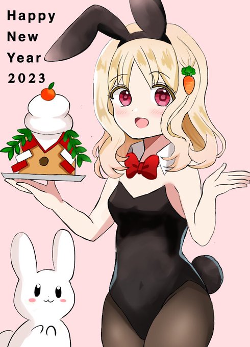 9 34 新年明けましておめでとうございます!🎍 卯年なのでバニーガールのユイちゃんを描きました🐰 これからもディアラバを描いていきますので今年もよろしくお願いします! 23/01/01 00:03