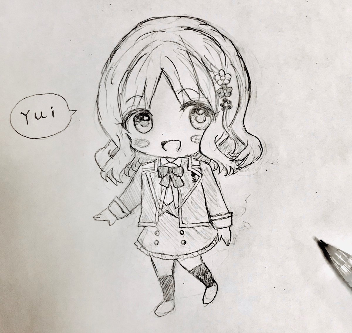 久々にアナログ!二等身のユイちゃん描いた✍️