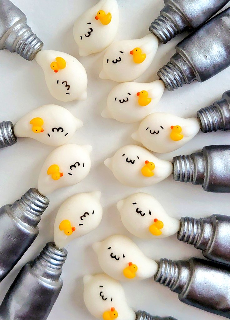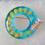 【新作 アヒルブローチ (円)】 ちいさなチューブから沢山のアヒルちゃんが飛び出してきた円ブローチです!箱はひとつずつ箔で描いて作りました🐼✨ @Lupopo_cafe #100色のえのぐブローチ展 個展詳細→yuzupanda.com/event/20230615…