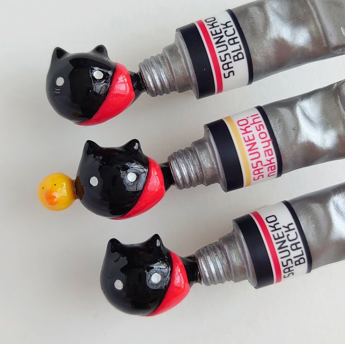 【コラボ作家さま紹介②】 さすらいねこ屋/さがおうじさん🐱赤いスカーフがトレードマークのさすねこブローチ!!ノーマル、ねない、なかよしの3種類です! 【 #100色の絵の具ブローチ展 】 日時 :2023/6/15-6/19 場所:三軒茶屋 LUPOPO cafe あと 16日🐼 yuzupanda.com/event/20230615…