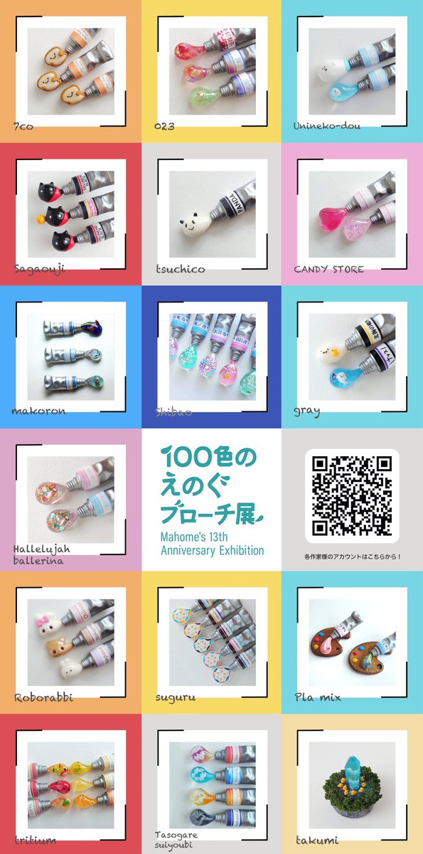いよいよあと4日🐼コラボ作家さまの一覧です✨コラボ作品は初日と土曜日に追加。通販は15時からスタート予定です。 【 #100色の絵の具ブローチ展 】 日時 :2023/6/15-6/19 場所:三軒茶屋 LUPOPO cafe あと 4日 ☕ @Lupopo_cafe