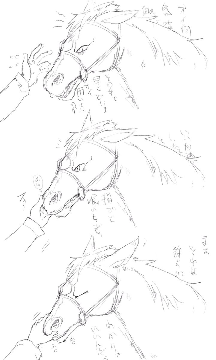 オジュウのTwitter動画を見て可愛すぎて描いてしまった 実際は鼻触ってる時もモグモグしてたけど別の動画で長沼さんにマッサージされてた時は素直だったので鼻は触られるの好きそう