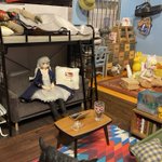 ちょっと前に作ったロフトベッドを卓上に配置 手持ちのソファーがシンデレラフィットだったので良い感じになりました
