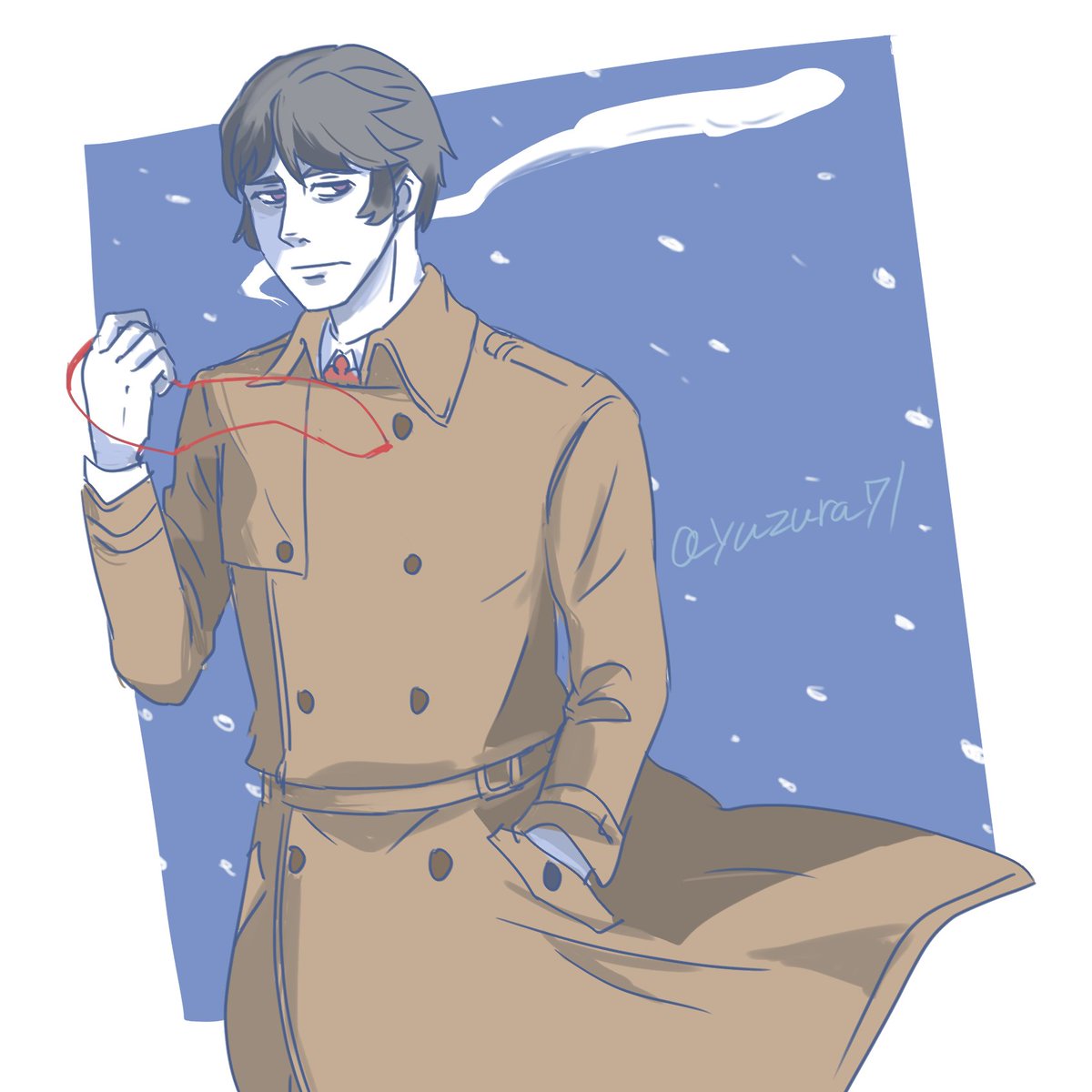 遅刻しました、コートと言えばこの季節はトレンチコートも着こなす貝木さん #物語ワンライワンドロ