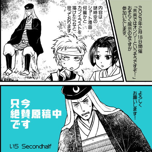 明日1/22(土)開催の逃げ若オンリーの展示・若頼現パロ漫画完成しました~!5頁でギャグ寄りですがちょっと本誌&今後の展開匂わせあります。 #みらぞ