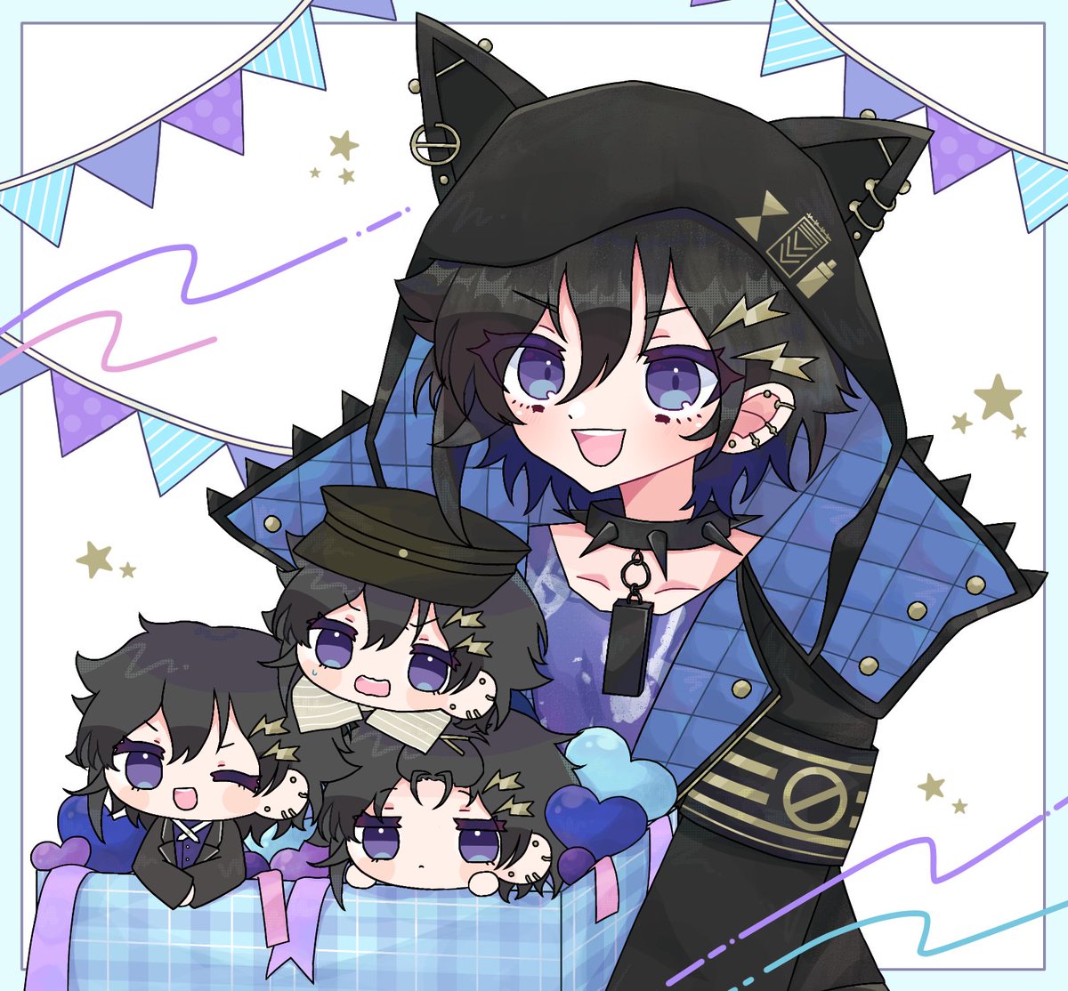 #奏手イヅル4周年 #イヅル描いたぞ 4周年おめでとうございます!ライブもめちゃくちゃ良かったです…!!🐈⬛🎸
