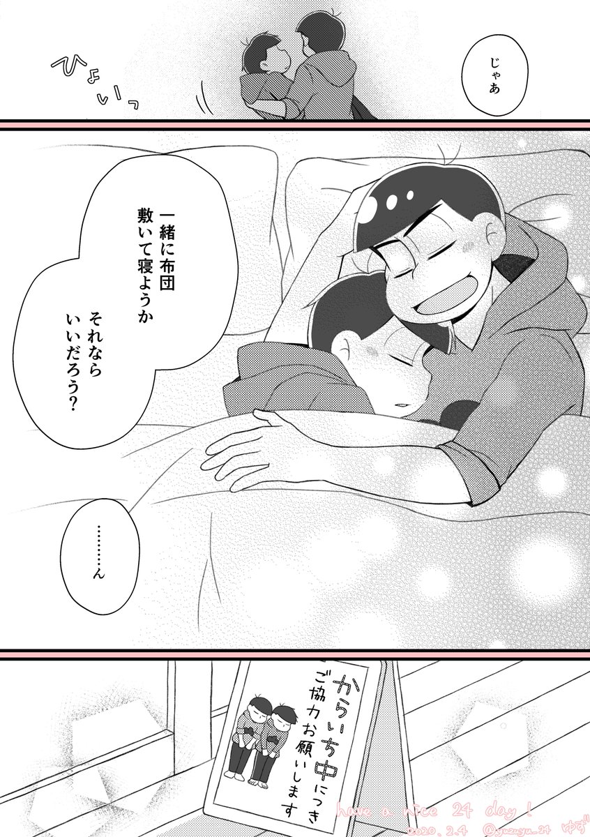 #カラ一の日 #2月4日はカラ一の日 #蜂蜜よりも甘いカラいちの日 💙💜からいちの日おめでとうございます💙💜 去年のからいちの日漫画のゆたんぽ設定引きずってます (これ単体でも問題なく読めます)