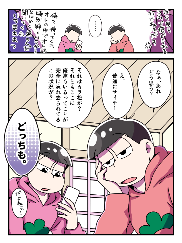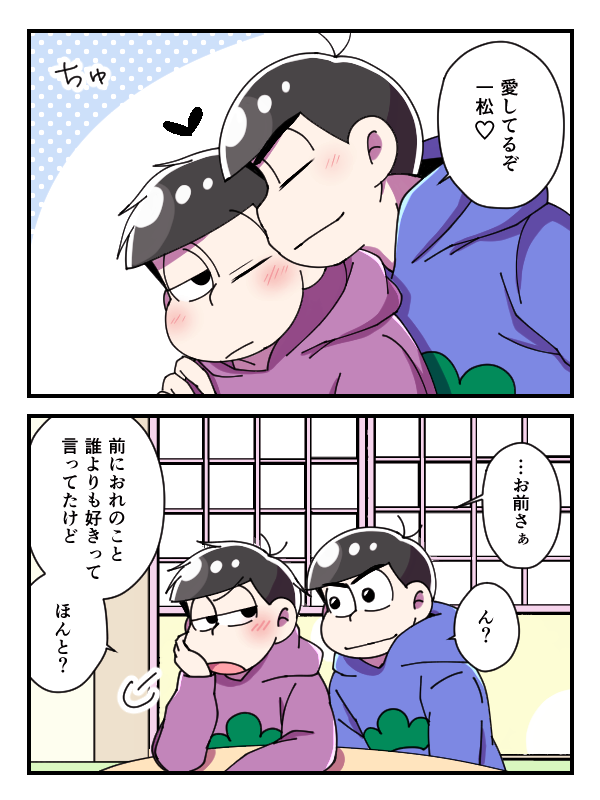 からいち。 たまたま早めに帰宅した次男と厳戒態勢に隙がありすぎた四男。 以前の診断メーカーのやつです。RTいただきありがとうございました✨ twitter.com/yuzuyu_24/stat…