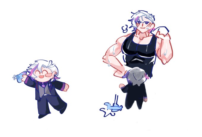 #YaminoArt I noticed that everyone else wore white pants in Luxiem, but Shu wore pink and white gradient leggings, and I wondered if nobody had told Shu to wear white pants, so I drew this picture about Shu and pants.