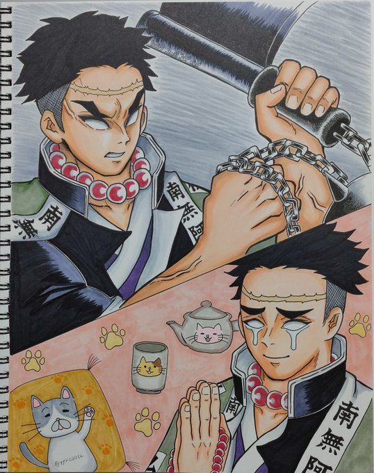 #悲鳴嶼行冥誕生祭2022 #悲鳴嶼行冥生誕祭2022 📿さんお誕生日おめでとうございます🎂 強くてカッコいい姿と🐈チャンを愛でてる姿どちらも好きです☺️ #アナログイラスト #コピック (模写アレンジしました🖊)