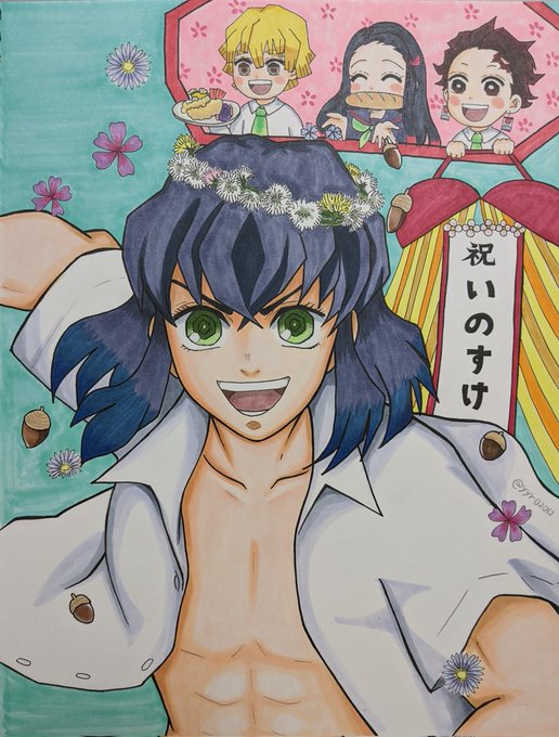 1日遅くなってしまった💦けど!! お誕生日おめでとうございます🥳👏 #宇髄天元誕生祭2022 #宇髄天元生誕祭2022 皆で💎さんになってお祝い🎉 皆派手派手になってちょっとご不満な💎さんです🤭(模写アレンジ) #コピック #アナログイラスト