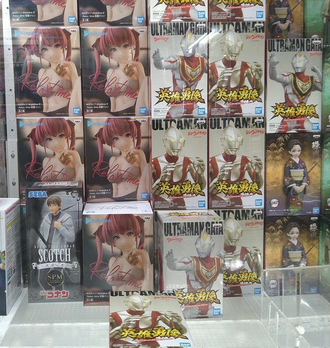 そういえば、先日見かけたUFOキャッチャー、船長とウルトラマン並んでてめっちゃシュールだったな。どういうセレクト? #マリンのお宝 #マリン航海記 #宝鐘マリン