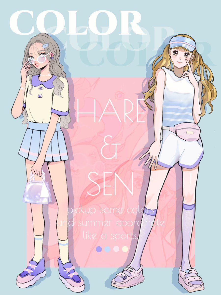 せんさん👉🏻(@sn_illust )と一緒に夏ガール描きました〜❣️❣️✨✨ 同じ色を使ってそれぞれ夏のコーデを考えてみました🫶🏻🫶🏻🏝️⛱️ せんさんの方で色違いコーデ載せてますのでそちらも見てください💓 コラボありがとうございました〜🥰