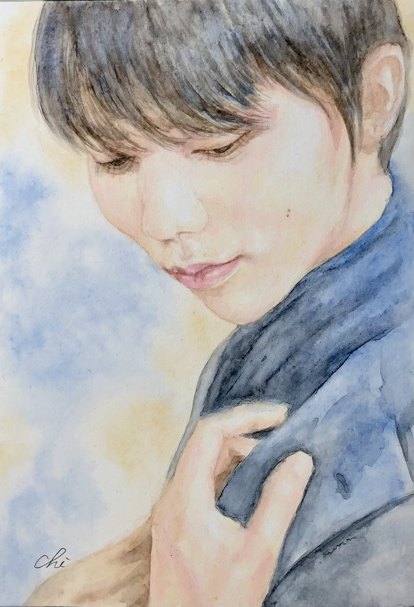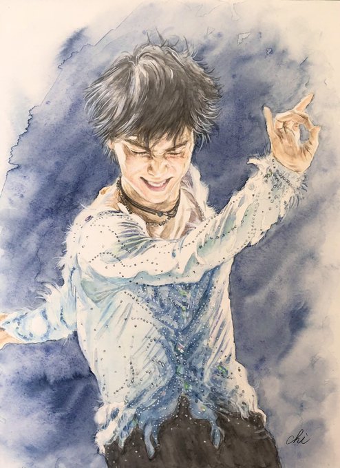 #HANYUYUZURU #羽生クラスタ絵画部 透明水彩 おとといは扇風機をつけてたけど、今日は寒くてストーブを引っ張り出してつけたよ💦💦 温度変化が大きいから身体を労わりましょうね😊 小海途良幹様のお写真を描かせていただきました。