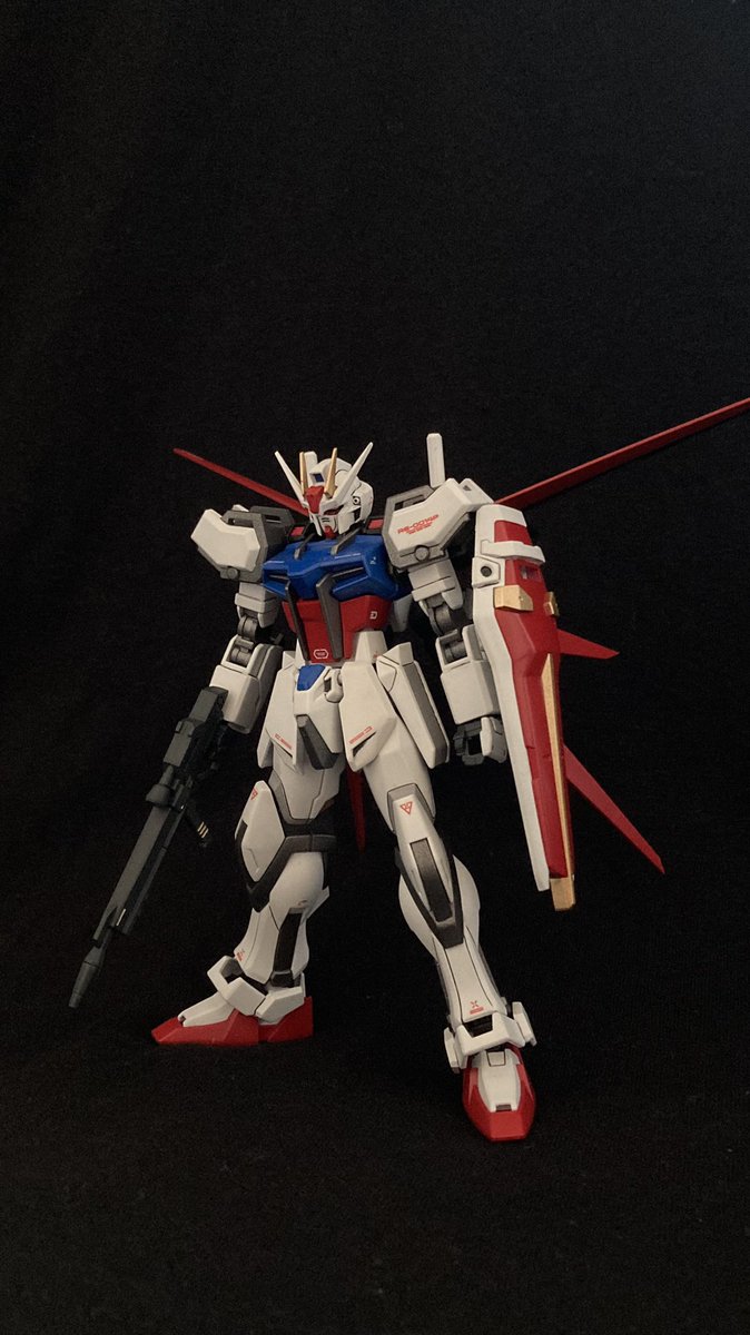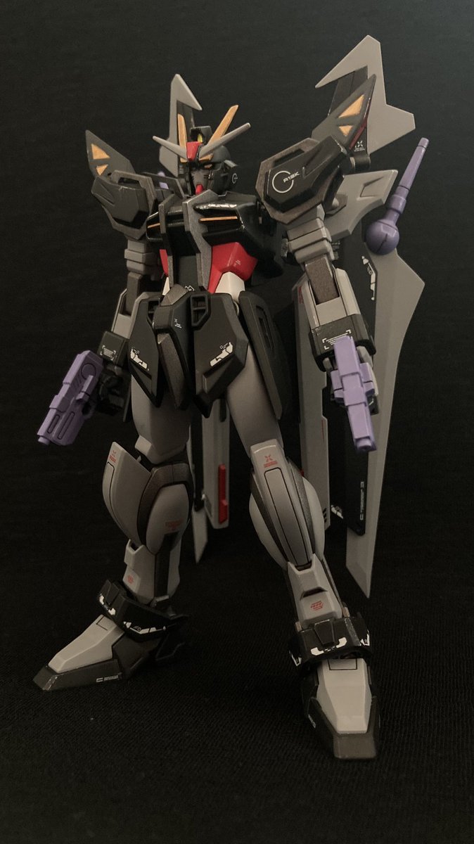 HGストライクノワール全塗装完成 塗り分け大変だったけどカッコいいから許す #ガンプラの画像貼るとRTされると聞いて #ガンプラは自由だ #ガンプラはどんな自由な発想で作ってもいいんだ #ガンプラ #水性ホビーカラー
