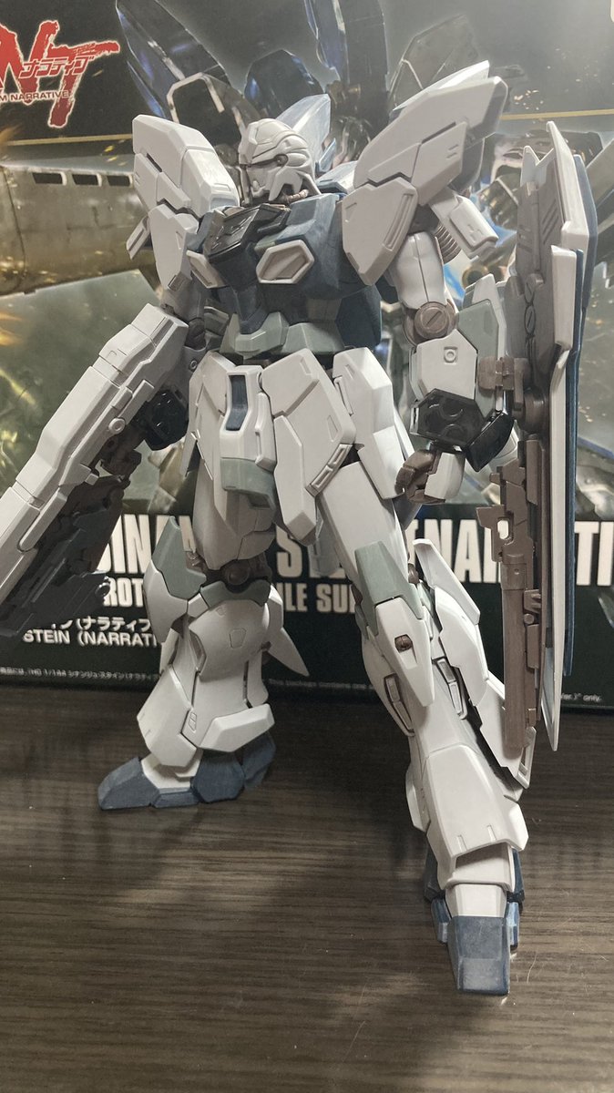 HGシナンジュスタイン 仮組み終了 イケメンすぎて素組みだけでもカッコ良すぎるぞこれ! 週末の塗装が楽しみ〜 #ガンプラ好きと繋がりたい #ガンプラの画像貼るとRTされると聞いて #ガンプラはどんな自由な発想で作ってもいいんだ