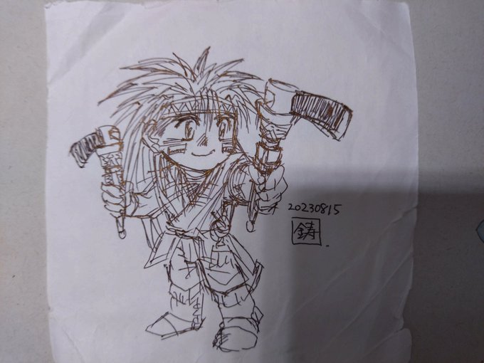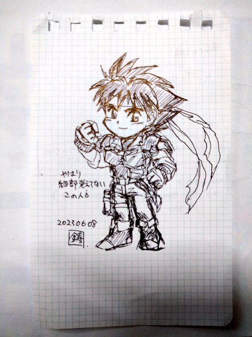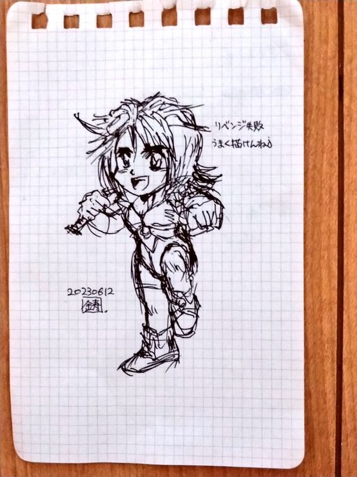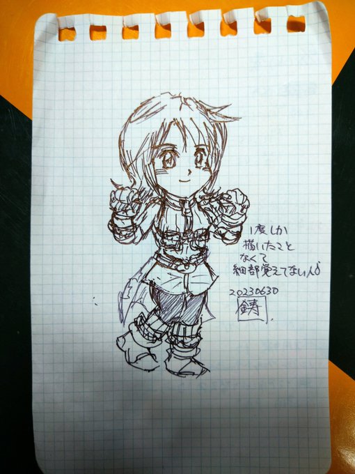 11 70 しごおわから帰宅→晩ごはん中です。 本日の休憩時間のらくがきはこちら。 毎度のことながら老眼鏡かけない・あまり明るくない場所で描いたDS版サガ3シリュー(のつもり)です(;´∀`) やはり最初に描いたディフォルメ八重ちゃんと比べると、大きく描いてますね😅 23/06/30 20:36