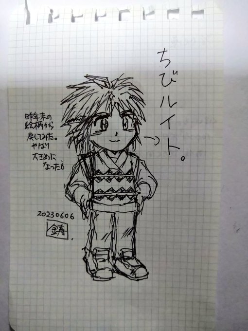 0 39 今日の休憩時間のメモ裏らくがきはこちら。 何げにこのキャラ私が初めて作った“うちの子”です(何 因みにこのメモ帳のサイズはA7です。 23/06/06 20:43