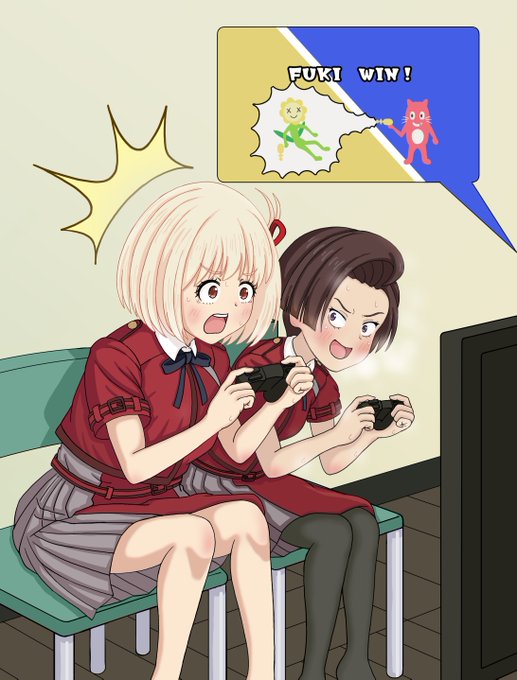 リコリス・リコイルの千束とフキを描きました。 ゲームで千束に勝ってご満悦なフキさんです。 #イラスト #リコリコ #リコリス・リコイル