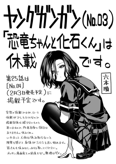 宣伝です。 現在発売中のヤングガンガンに 【恐竜ちゃんと化石くん】 第25話が掲載されてます。 一ヶ月ぶりの掲載ですね。みんな忘れないで。 他の人気作品たちと一緒に是非。 #ヤングガンガン #恐竜ちゃんと化石くん