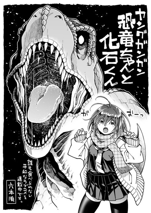宣伝です。 本日発売のヤングガンガンに 【恐竜ちゃんと化石くん】 第28話が掲載されています。 アクションシーンやパンチラもあるので、他の人気作品たちと共に是非。 #ヤングガンガン #恐竜ちゃんと化石くん