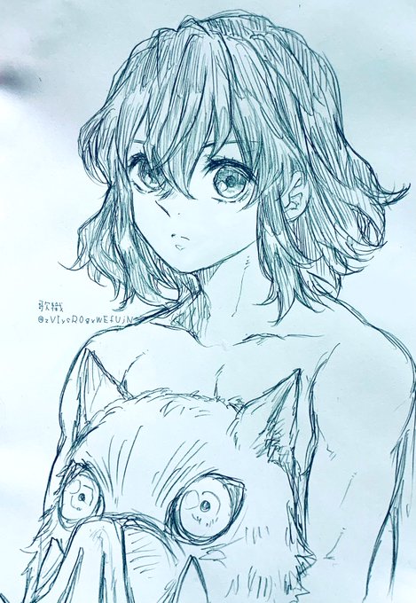 鬼滅にハマった友達の旦那さんに 伊之助の落書きプレゼントした😃