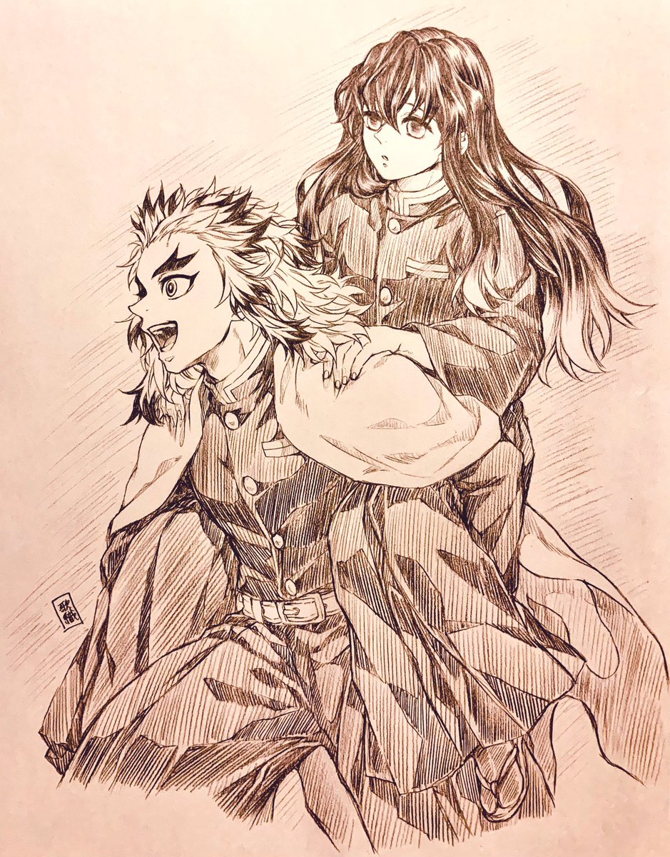 130 1283 【落書き】久々に描いてみた‼︎ #鬼滅の刃 #鬼滅の刃イラスト #鬼滅の刃ファンアート #煉獄杏寿郎 #竈門炭治郎 #竈門禰󠄀豆子 22/02/12 03:58