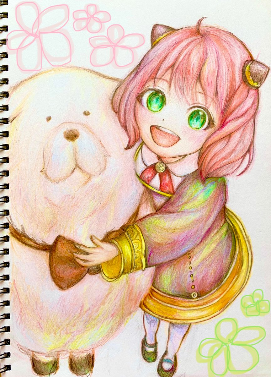 アーニャが大好きなボンドと一緒に2回目は描いてみました☺️🌼 #絵描きさんと繫がりたい #絵描きさんフォロバ100 #イラスト好きさんと繋がりたい #イラスト #夏の創作クラスターフォロー祭り #スパイファミリー #アーニャ #anya #SPYxFamily #SPY_FAMILY #drawing