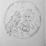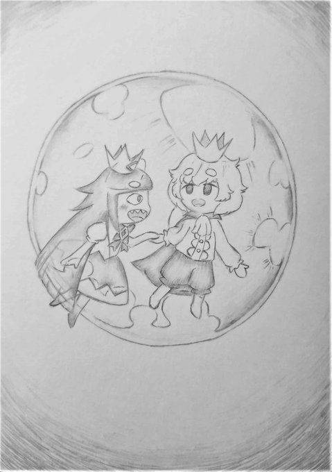 #今月描いた絵を晒そう ひめひめ(左)とルナ(右) ※今年は1か月1枚デジタルイラストを描くように目標設定していて、左は8月分、右は9月分(予定)です。 #駅メモファンアート #噓つき姫と盲目王子 #デジタルイラスト #アナログイラスト