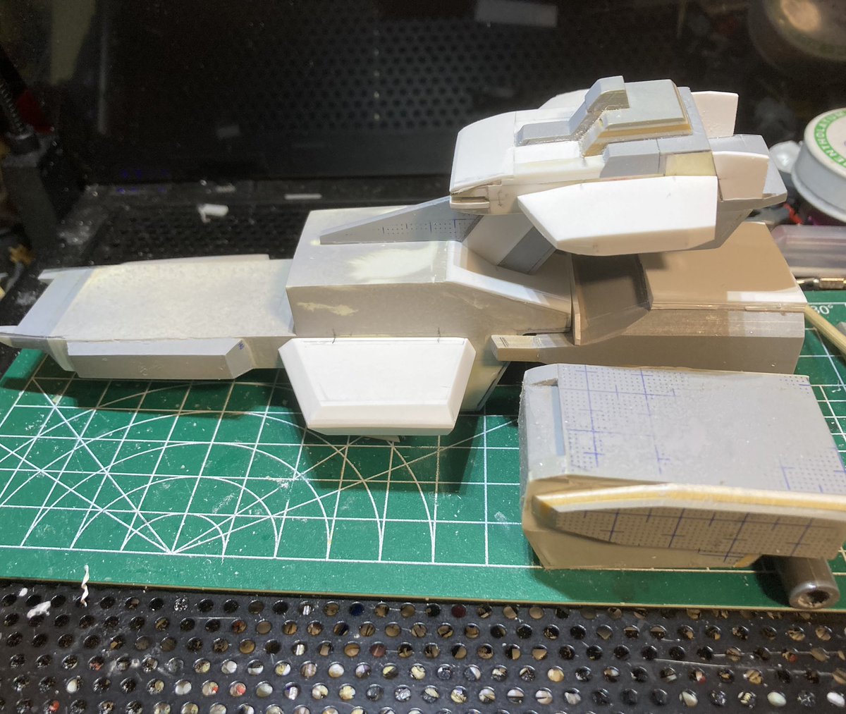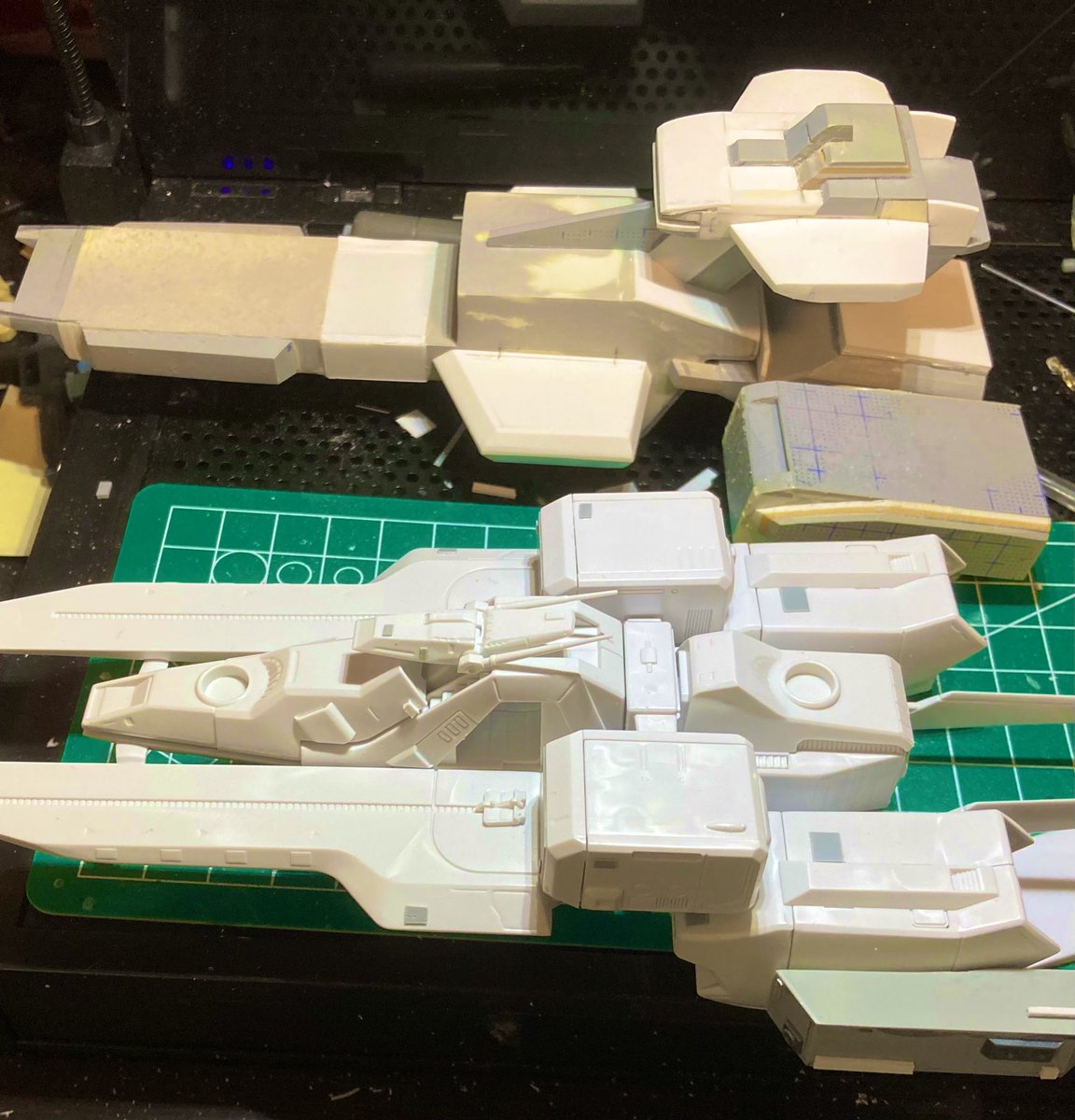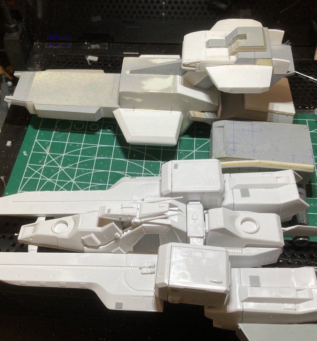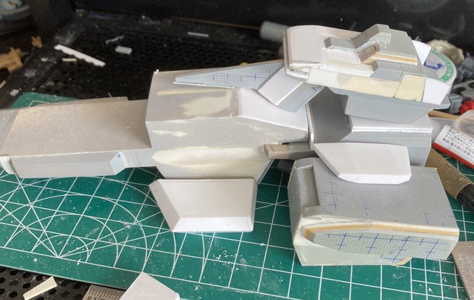 制作環境お部屋で申し訳ないけど… アレキサンドリアだいたい1/1700で作ってました😅 カタパルトこうして見ると寸詰まりで…ぶった斬って1cm伸ばそうか悩む🙄 #ガンプラの画像を貼るとRTされると聞いて