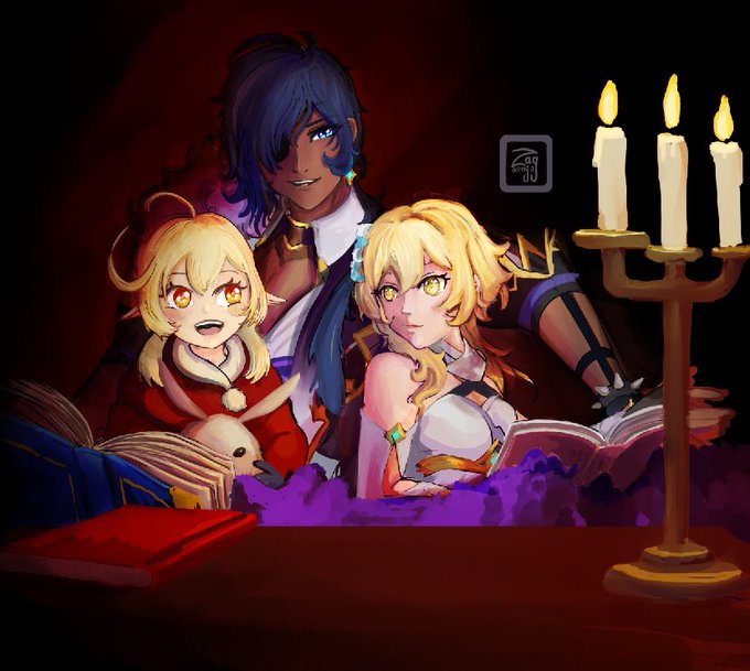 I wish there was a Halloween event with a cool sleepover scene #GenshinImapct #genshinimpactfanart #digitalart #Kaeya #Klee #lumine
